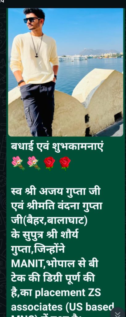 वर्ष 2023.24 के दिनांक 30.06.24 को महासभा एवं वैश्य विकास समिति जबलपुर द्वारा सम्मानित होने जा रहे दसवी के छात्रों की सूची नीचे वर्णित सभी छात्र/छात्राएं समाज की वेबसाइट एवं यूटयूब चेनल पर प्रकाशन हेतु अपनी फोटो व्हाटसअप क्रं0 9425405688 पर भेजें