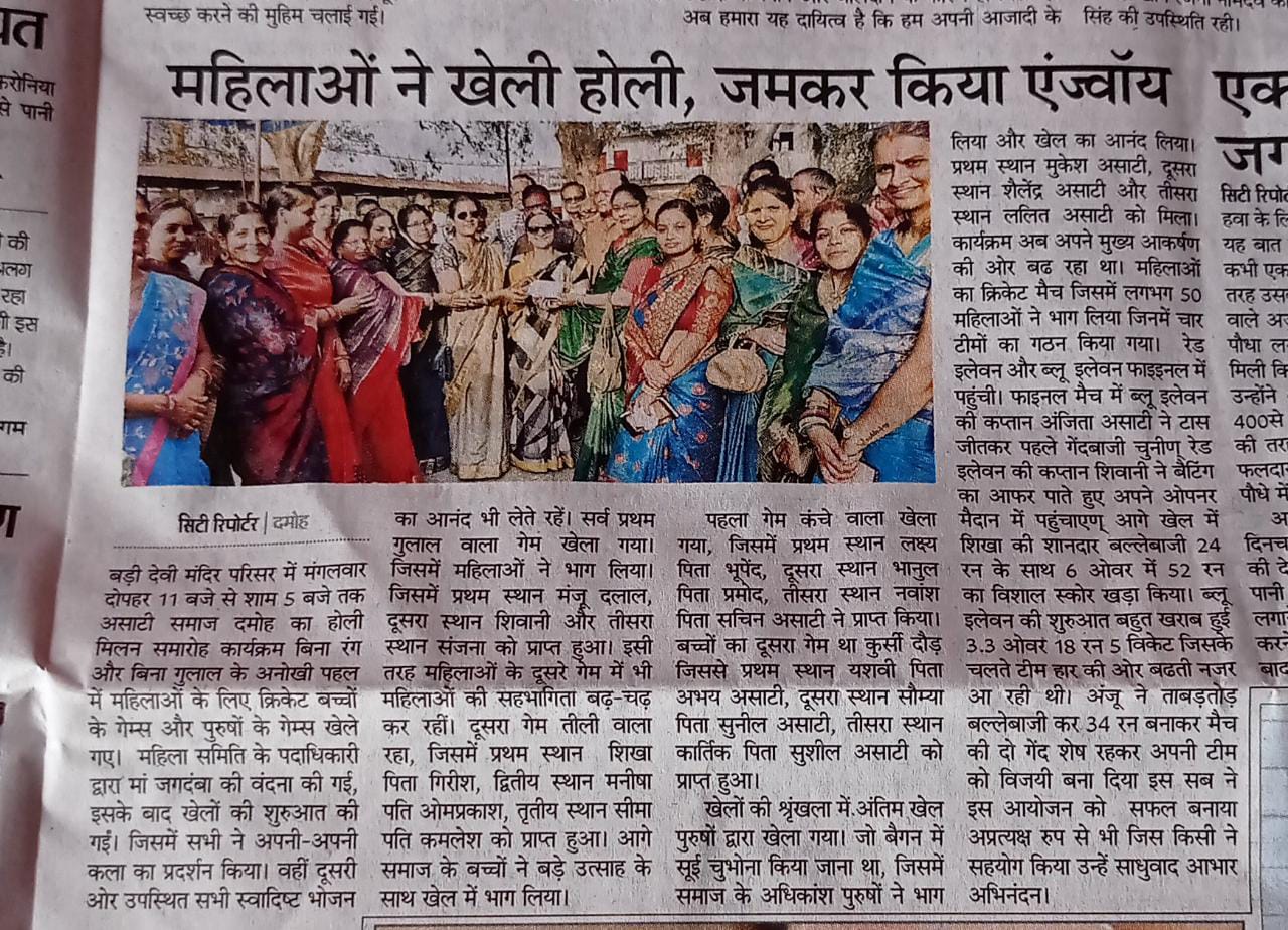 असाटी समाज दमोह में होली मिलन पर हुई खेल प्रतियोगिताएं 👇