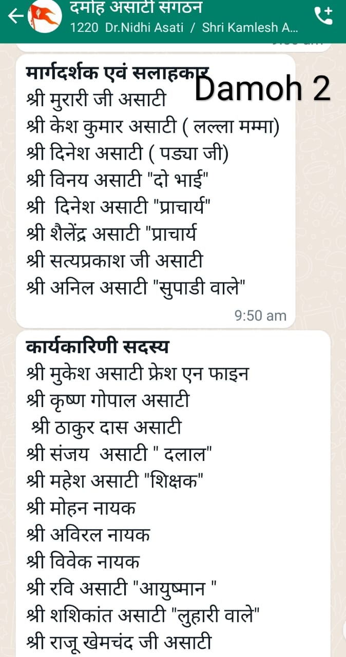 दमोह क्षेत्र से प्रकाशित जनगगणना क वंश वृक्ष डायरेक्टरी वर्ष 1995 संपादक दिनेश असाटी शिक्षक