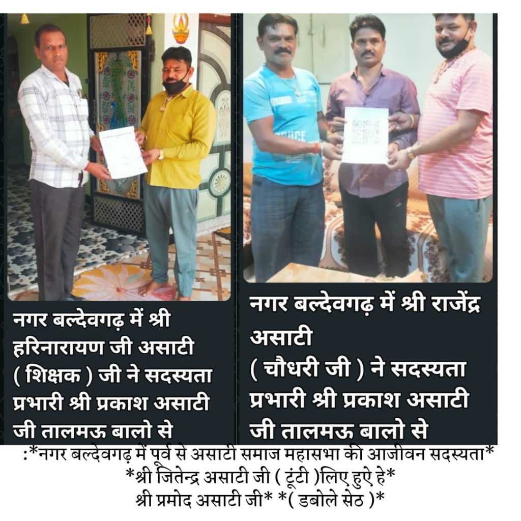 अपने सामाजिक संगठन अखिल भारतीय असाटी समाज महासभा की सदस्यता लेना, संगठन की शक्ति का परिचायक तो है ही, आपका संगठन के प्रति स्नेह,आसक्ति और सम्मान भी है,