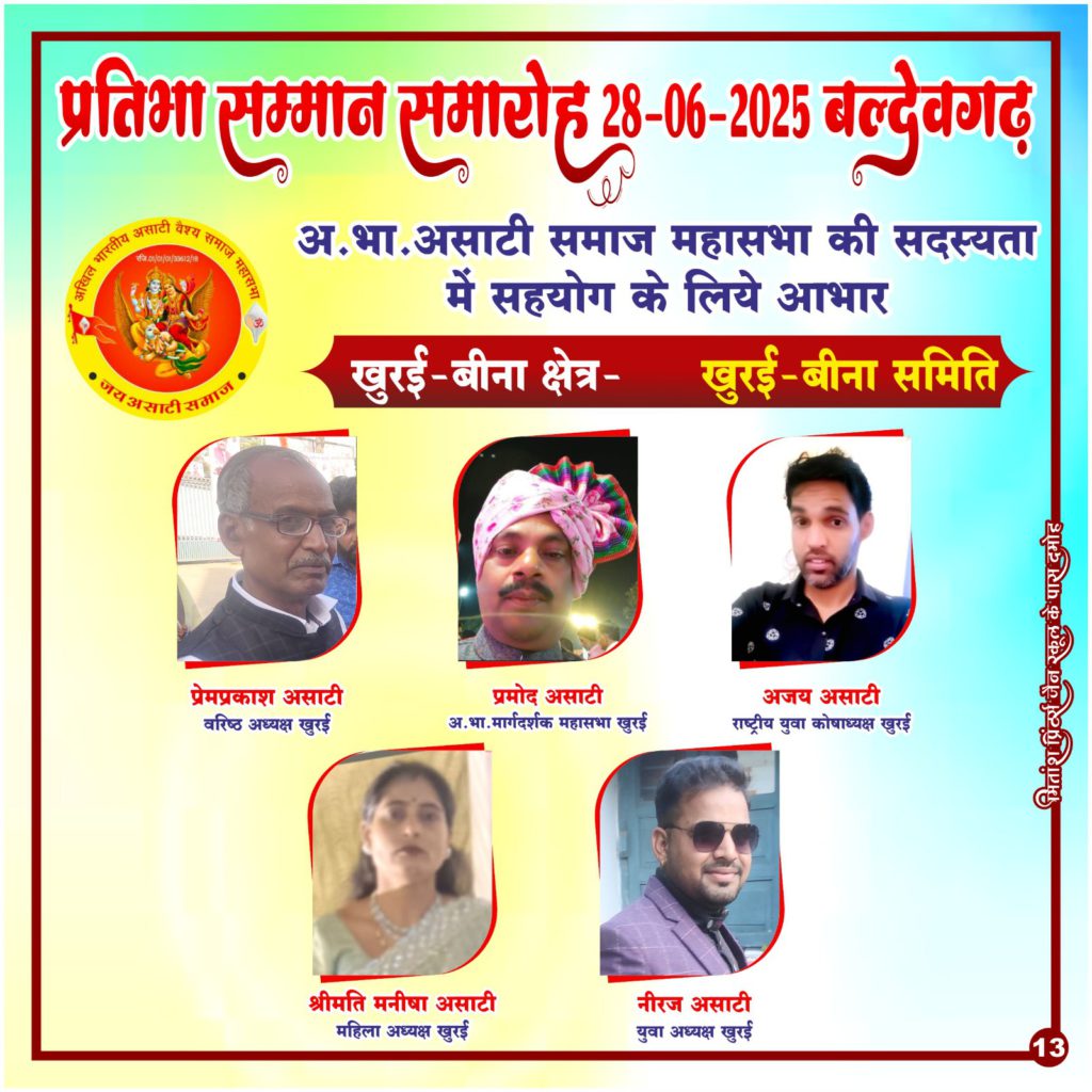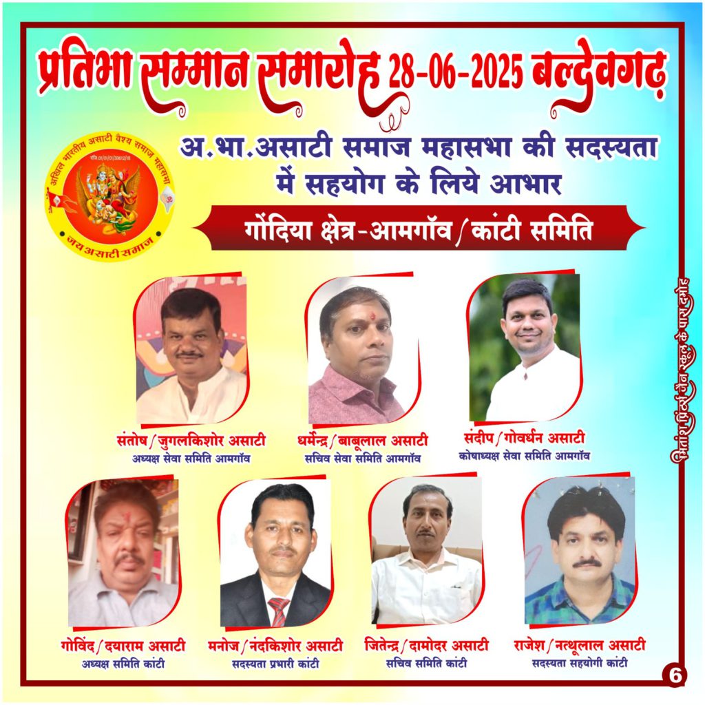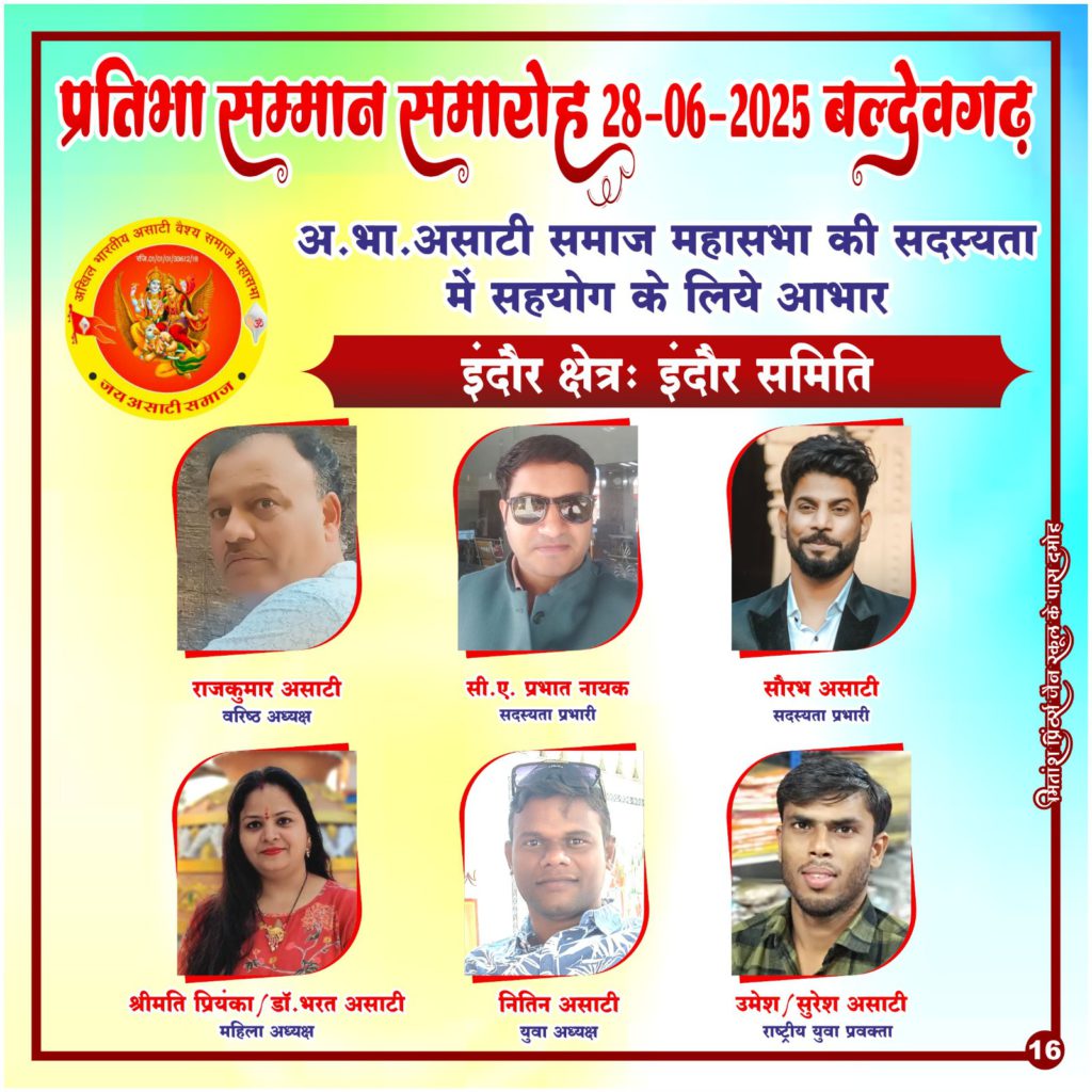 ’’अखिल भारतीय असाटी वैश्य समाज महासभा’’ एक रजिस्टर्ड संस्था है, जो हमारे समाज की प्रगति, एकता और सशक्तिकरण के लिए निरंतर कार्यरत है। आज हम आप सभी से आग्रह करते हैं कि महासभा की ’सदस्यता’ लें और समाज को और अधिक संगठित एवं सशक्त बनाने में भागीदार बनें।