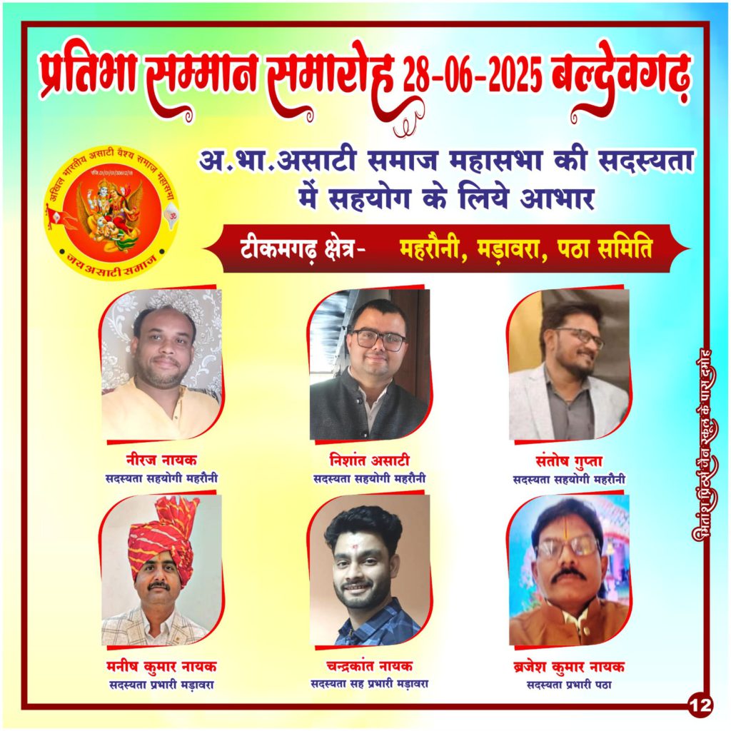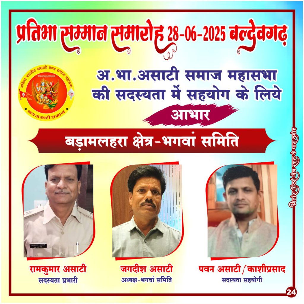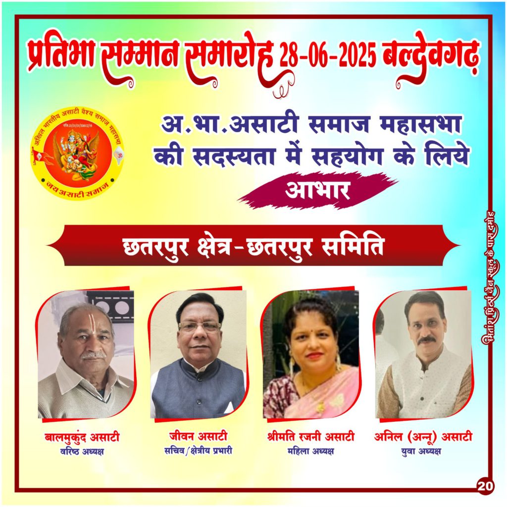 निवेदक ……असाटी …. एवं क्षेत्र प्रभारी अखिल भारतीय असाटी समाज महासभा क्षेत्र