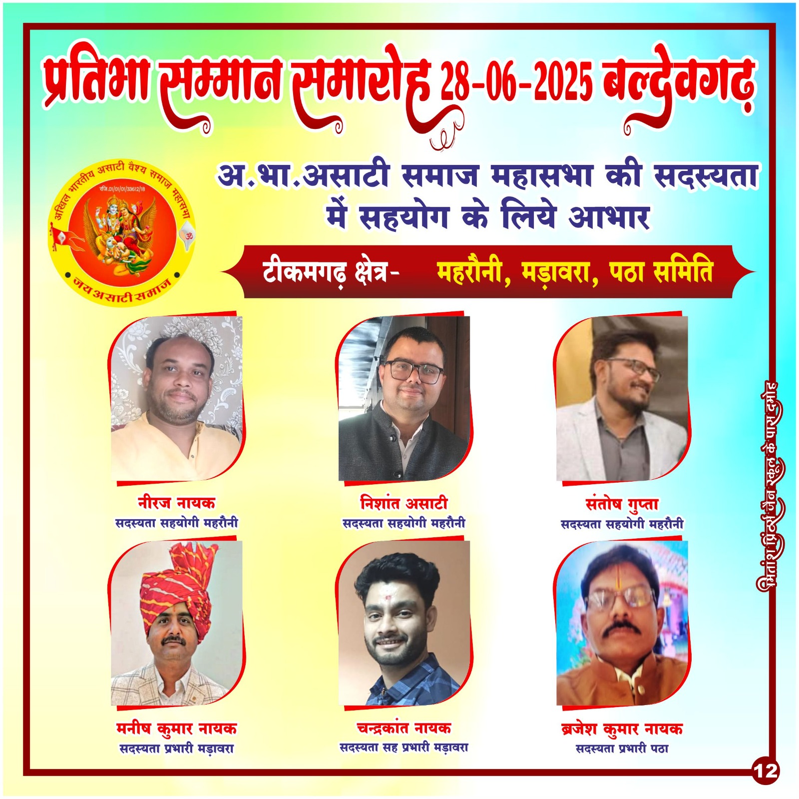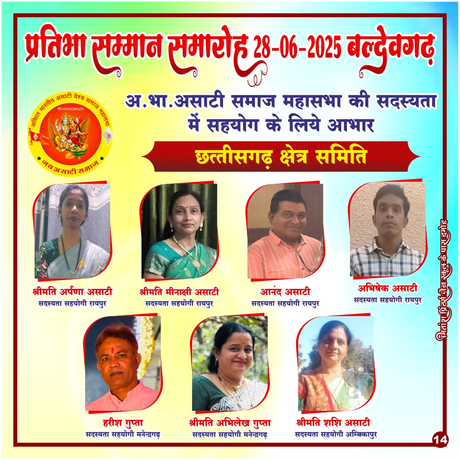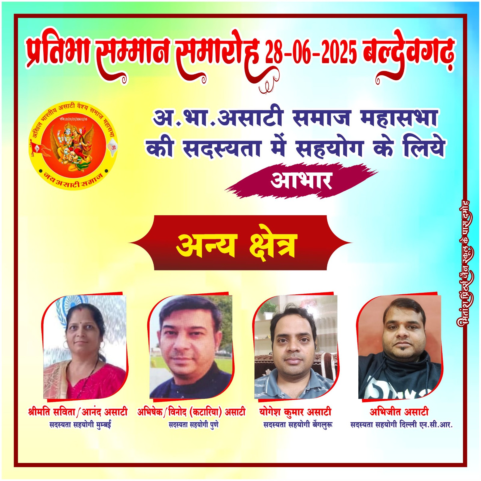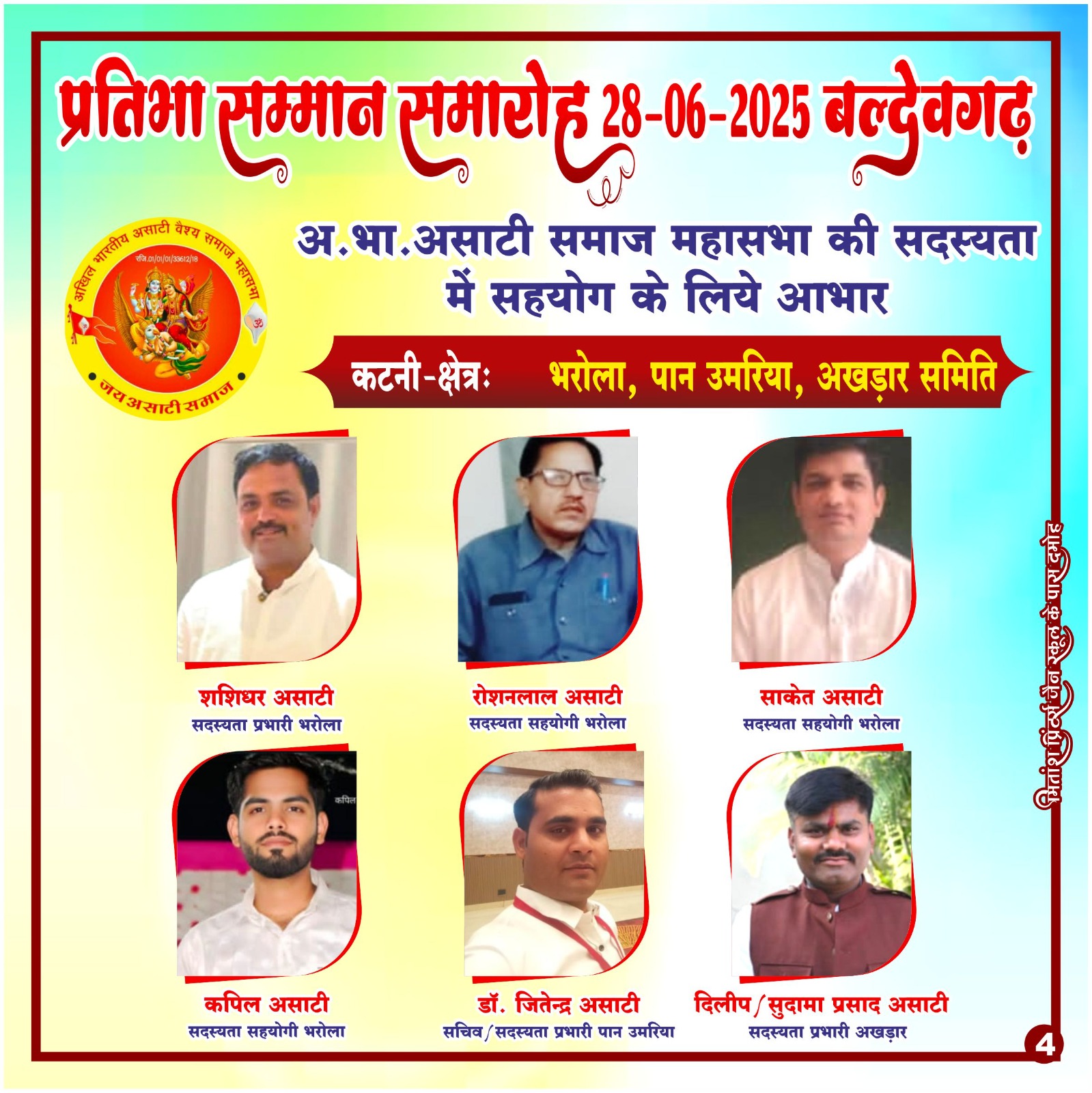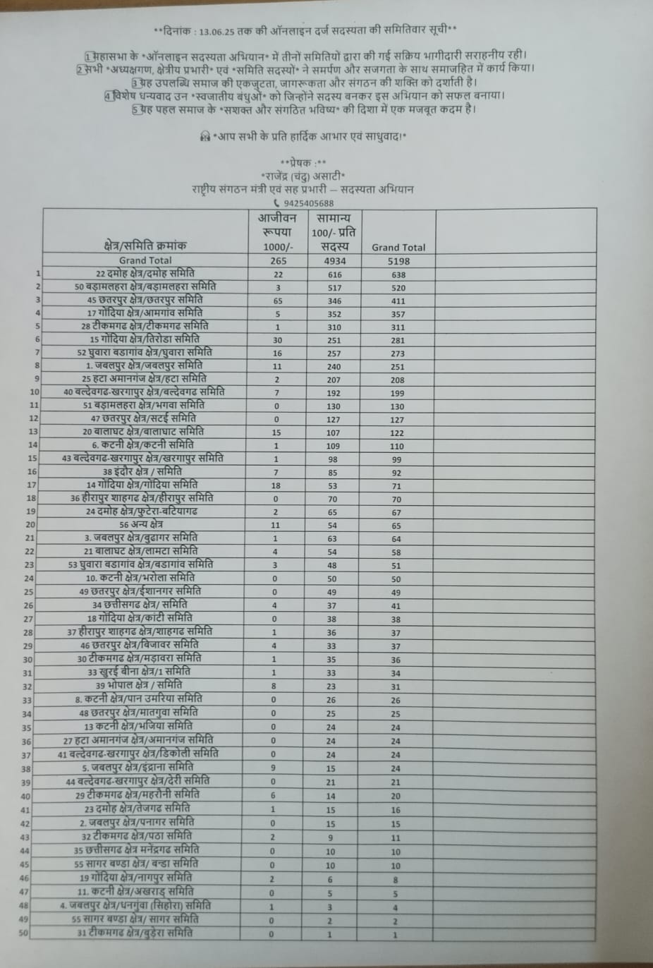 प्रिय असाटी महासभा सदस्यता अभियान के सभी क्षेत्रीय प्रभारी, सहप्रभारी एवं