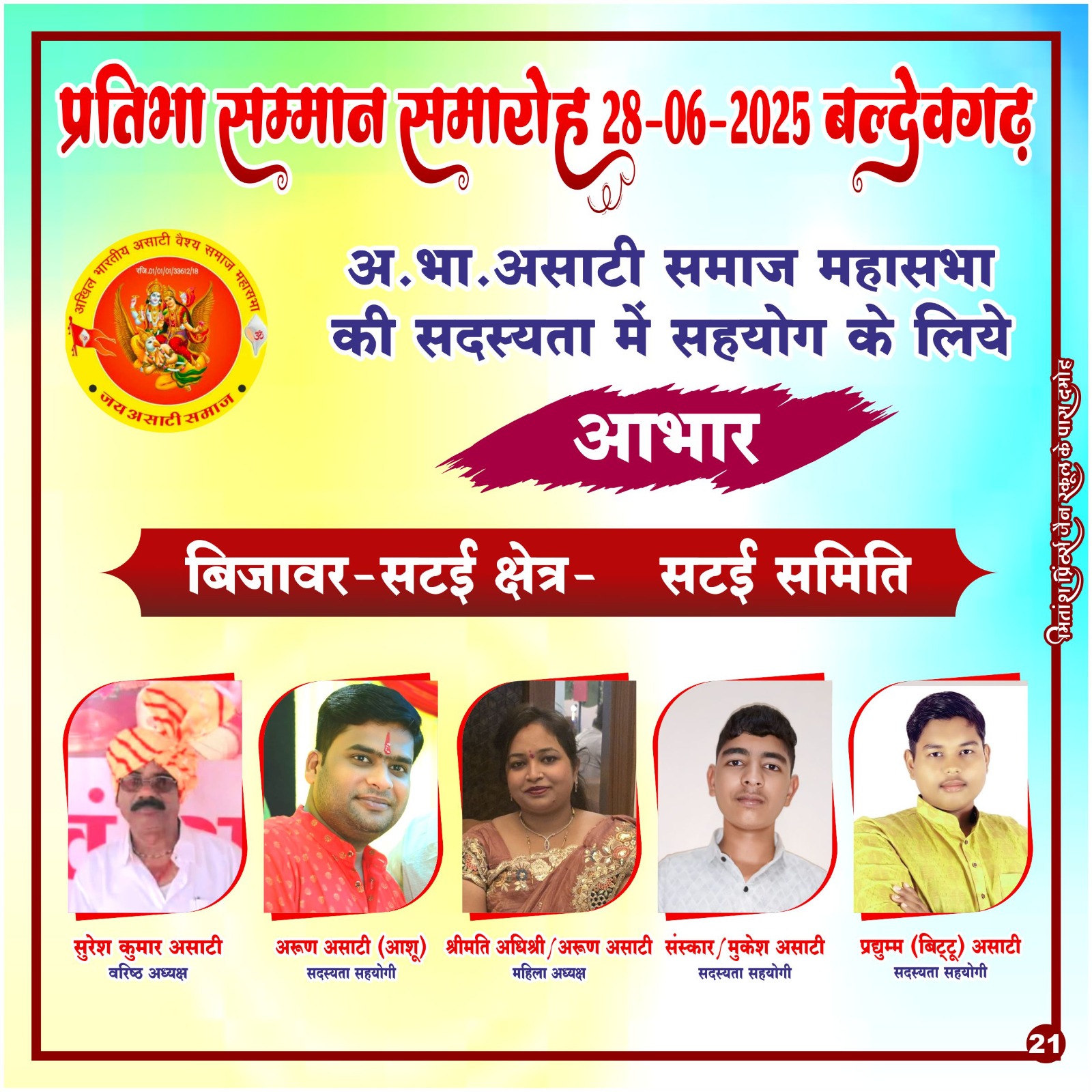 समस्त पदाधिकारी अखिल भारतीय असाटी समाज महासभा 🙏🙏