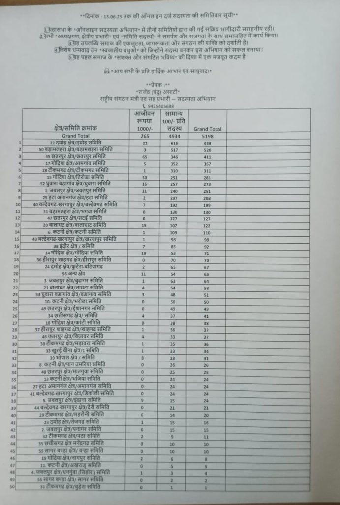 आप सभी से विनम्र अपील है कि इस अभियान को सफल बनाने के लिए अपने-अपने क्षेत्रों में हर सदस्य तक पहुंचें, उन्हें इस अभियान से जुड़ने के लिए प्रेरित करें, और महासभा के उद्देश्यों को समाज के हर कोने तक पहुंचाएं।