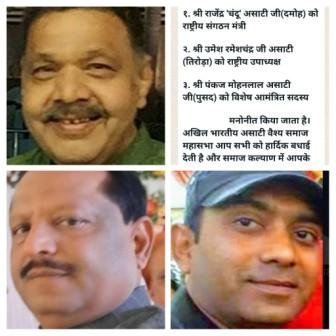 अमित असाटी, श्रीमती शशि असाटी राष्ट्रीय महिला अध्यक्ष आकाश असाटी, राकेश असाटी, पंकज असाटी, मनीष असाटी, डॉ. रमेश असाटी (बड़ा मलहरा), श्रीमती मोदी असाटी, मालती असाटी, पूर्व नगरपालिका अध्यक्ष स्नेहा असाटी, विनय असाटी (सिहोरा), धन प्रसाद असाटी (बड़ा मलहरा), चंदू असाटी (दमोह) आदि।