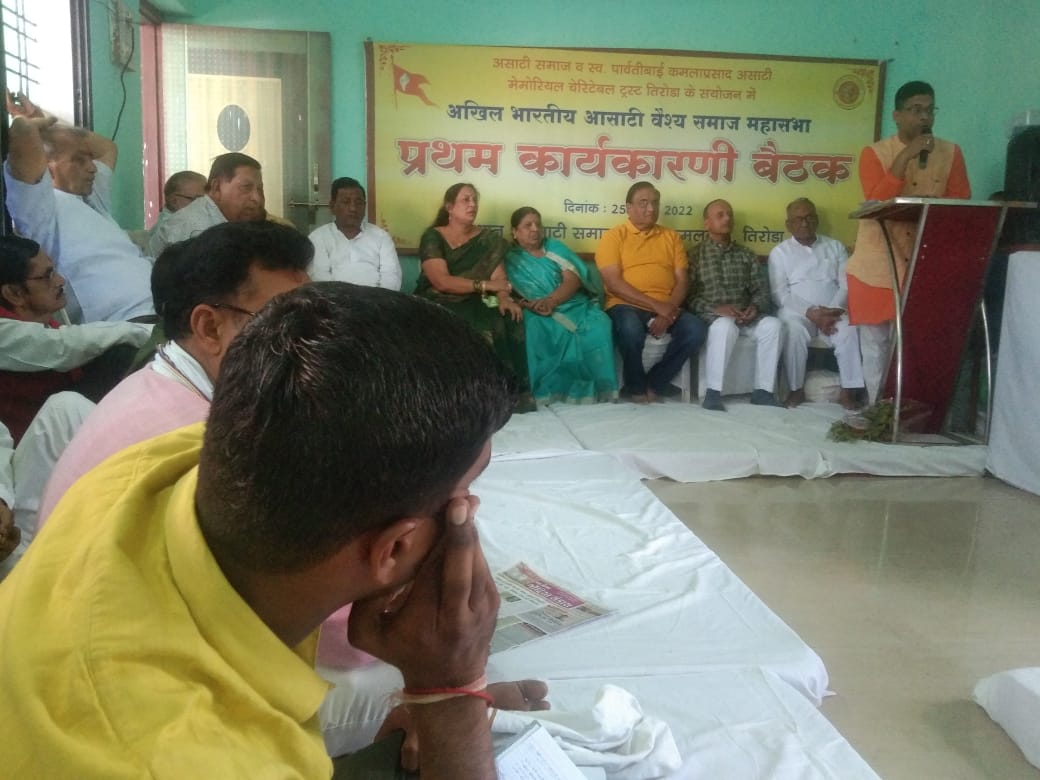 दिनांक 25 अप्रैल 2022 को असाटी समाज भवन कमल कुंज तिरोड़ा में अखिल भारतीय असाटी समाज महासभा की प्रथम एवं महत्वपूर्ण बैठक राष्ट्रीय अध्यक्ष श्री वीरेंद्र असाटी की अध्यक्षता मे निम्न विषयों पर आयोजित हुई उपस्थित गणमान्य पदाधिकारीयों एवं सदस्यों ने अपने विचार रखें. परम श्रद्धेय स्व श्री अमृतलाल असाटी जी की प्रथम पुण्यतिथि पर उनकी पावन स्मृति में उनके सुपुत्रों श्री दिलीप असाटी जी, बंशी असाटी जी एवं समस्त परिवार द्वारा "श्रद्धांजलि कार्यक्रम" आयोजित किया गया। कार्यक्रम की झलकियां असाटी वैश्य परिचय यूट्यूब चैनल की निम्न लिंक से देखें https://youtu.be/ABDvKa66T5E १. "प्रवास" के १२ बिंदुओं पर चर्चा २. शिक्षा प्रकोष्ठ एवं मेधावी छात्र छात्राओं के सम्मान पर चर्चा ३. अविवाहित युवक युवतियों के विवाह संबंध/परिचय सम्मेलन आज की अनिवार्य आवश्यकता? पर चर्चा ४. ग्राम/नगर/क्षेत्रीय समितियाँ एवं महासभा के संबंध समन्वय पर चर्चा ५. अध्यक्षजी की अनुमति से अन्य बिंदुओं पर चर्चा 2- श्रद्धेय अमृत लाल जी असाटी तिरोड़ा की प्रथम पुण्यतिथि पर समाज के उत्थान के लिए उनके द्वारा किए गए कार्यों को स्मरण कर उन्हें भावभीनी श्रद्धा पुष्प अर्पित किए गए 3- दिनांक 26 अप्रैल 22 को गोंदिया क्षेत्र के तिरोड़ा, मुंडीकोटा ,गोंदिया, आमगांव कांटी, बालाघाट, लामता मैं महासभा द्वारा प्रवास कर स्थानीय समितियों से परिचय एवं सामाजिक विषयों पर चर्चा की गई 5- बालाघाट में पिछड़ा वर्ग आयोग के अध्यक्ष आदरणीय श्री गौरीशंकर बिसेन जी से महासभा एवं बालाघाट समिति द्वारा समाज को पिछड़ा वर्ग में लाने के लिए बहुत विस्तार से चर्चा हुई