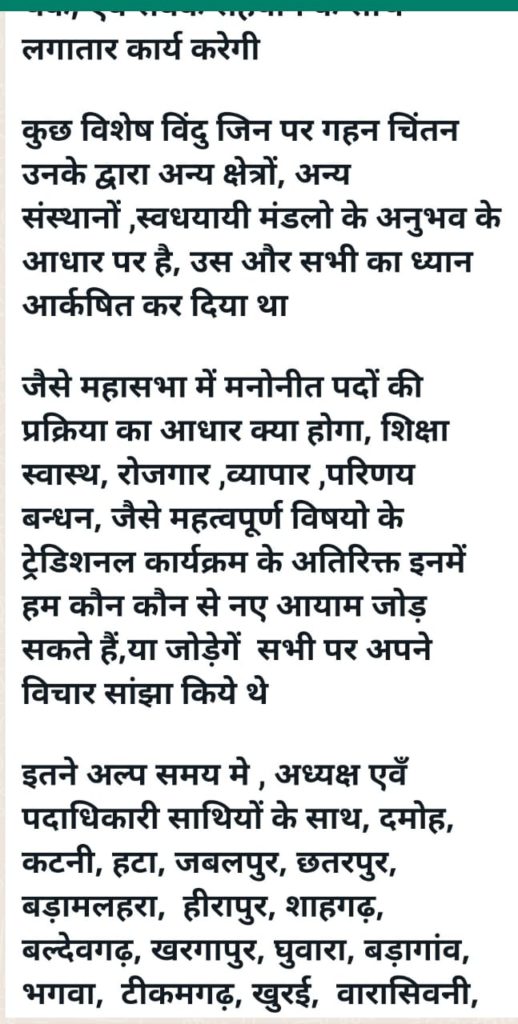 महासभा के मनोनीत पदाधिकारी/अन्य प्रकोष्ठ समितिया/तिरोडा में प्रथम बैठक आयोजित हुई